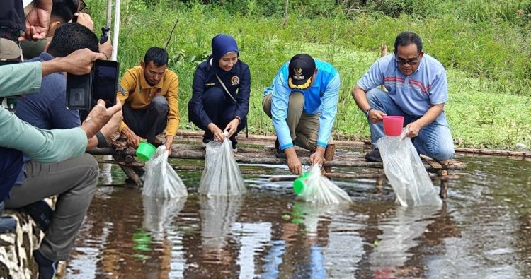 HSU - Di tengah semarak Peringatan Hari Ikan Nasional ke-14, Bupati Hulu Sungai Utara (HSU) Sahrujani bersama Wakil Bupati Hero Setiawan turut memeriahkan acara dengan menebar ribuan bibit ikan tawar. Aksi simbolis ini berlangsung di Desa Banyu Tajun Dalam, Kecamatan Sungai Pandan, pada Jumat (21/11/2025), menjadi penanda komitmen kuat Pemkab HSU terhadap sektor kelautan dan perikanan yang berkelanjutan.